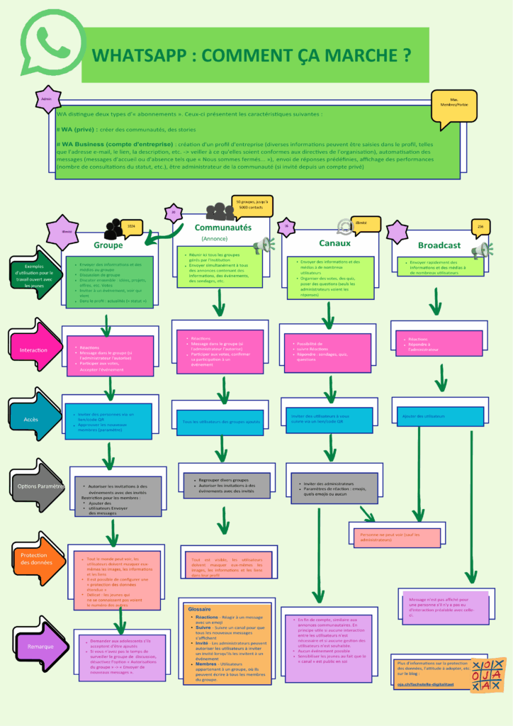 • #Objectifs : définir des indicateurs et les évaluer régulièrement. Par exemple : pourquoi voulons-nous utiliser WA ? Qu’espérons-nous atteindre ? Est-ce réaliste avec WA ? Ou un autre média serait-il plus approprié ? Combien de temps puis-je y consacrer ? Comment et pourquoi voulons-nous concevoir ce canal ?
